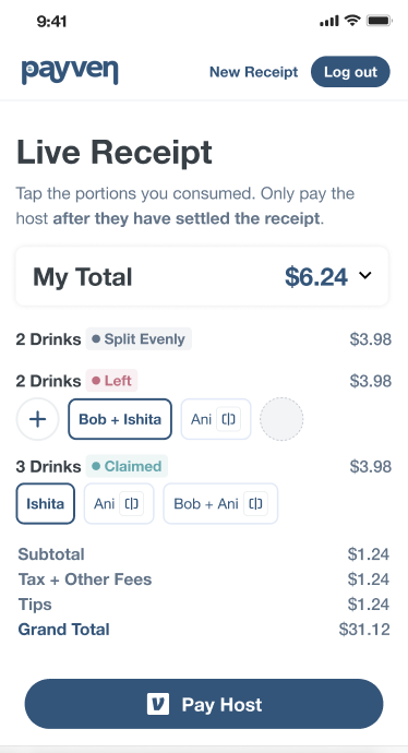 Unlike tools like Splitwise which work by manually entering expenses, Payven automatically scans all line items from a receipt and creates a live link for everyone to tap what they ordered. At the end, it provides options to Venmo or Zelle the host who paid.